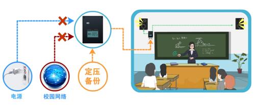 教室內的廣播系統需采用雙揚聲器設置和線路雙備份設計,保證每個教室在單個揚聲器和單條線路出現故障時聽力廣播系統能正常運行,機房廣播系統電源使用雙電源機制,且有UPS緊急備用電源,確定停電時設備也能正常工作不間斷。