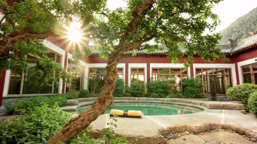 西安華清御湯酒店位于西安華清池景區九龍湖南側,是一處集溫泉水療、沐浴養生、盛唐文化品賞于一體的高端園林式溫泉酒店。以“師法自然”的理念,突出“唐、禪、清、養”主題。山、水、林、石自然融合,亭、軒、廊、殿相映成趣,自然之美與雕琢之美融為一體,溫泉氤氳,環境優雅。