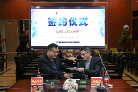 itc與信通達(dá)智能科技有限公司在產(chǎn)品采購、整體解決方案、品牌打造等不同層次的合作推進(jìn)達(dá)成合作意向,并現(xiàn)場舉行簽約儀式,雙方希望在未來的業(yè)務(wù)中有更深的合作。