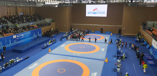 摔跤場館比賽實(shí)況,首日賽事圓滿完成。