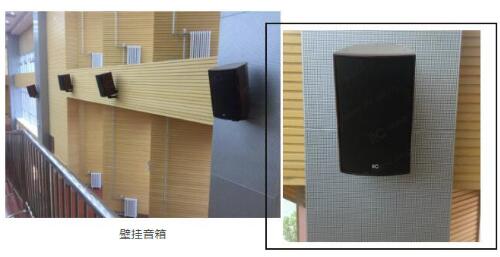 全頻音箱輔助設計,在會場左右兩邊壁掛安裝,讓整個觀眾會場的直達聲達到飽和,讓觀眾會場的每個角落都能聽到絕對的直達聲。