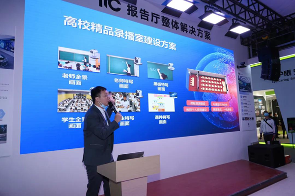 方案的本質(zhì)是以教育學與心理學理論為基礎,以現(xiàn)代視聽技術為手段,進行課堂模擬教學訓練。在教學過程中可以進行音視同步錄制,結(jié)束后自動上傳實訓平臺,學生課下可以通過點播視頻進行學習,老師同樣也可以通過點播實訓教學視頻進行相互探討,為師生提供輕松、靈活地開展交互式教學體驗。在此次搭建的展會現(xiàn)場,實訓課堂憑借其應用中不俗的表現(xiàn),吸引了多名前來參展的人員久久駐足。