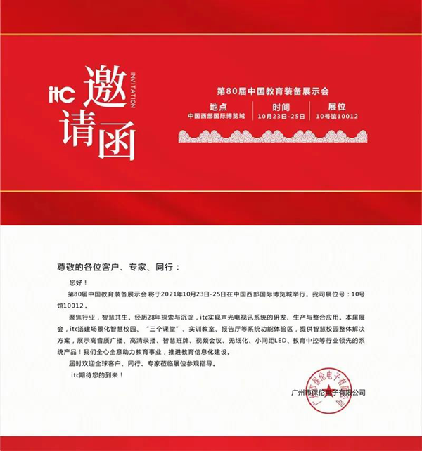 10月23日,itc攜“三個課堂”、實訓教室、報告廳等系列產(chǎn)品亮相第80屆中國教育裝備展示會,以智能化、數(shù)字化的產(chǎn)品及一體化整體解決方案,備受參展商及參觀者的青睞。