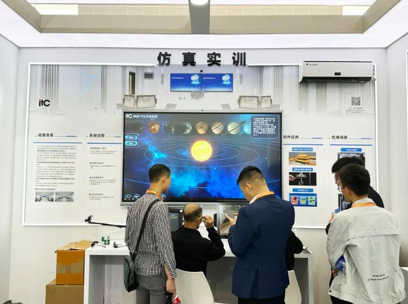 仿真實訓作為本次展會的“明星產品”,備受客戶朋友的廣泛關注。通過集合虛擬現實和增強現實技術,集成傳感器、計算機處理單元、顯示屏和交互控制器等,搭配專業的3D視頻資源,提供沉浸式的虛擬現實和超現實體驗,有助于增進課堂互動,提升教學效果。