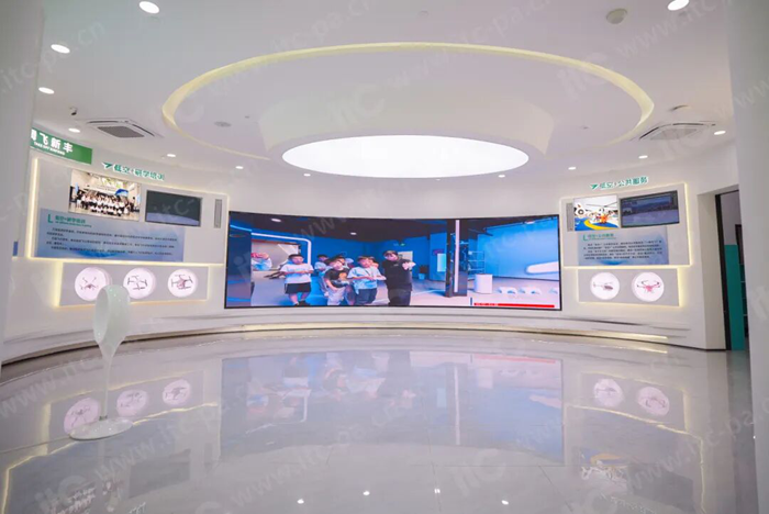 在核心展區,首先映入眼簾的是由itc精心打造的室內全彩LED顯示屏。它不僅是信息的窗口,更是視覺的藝術。通過該顯示屏的部署,參觀者可以直觀感受到無人機群在城市上空有序穿梭的模擬畫面,讓抽象的技術概念轉化為觸手可及的視覺體驗。