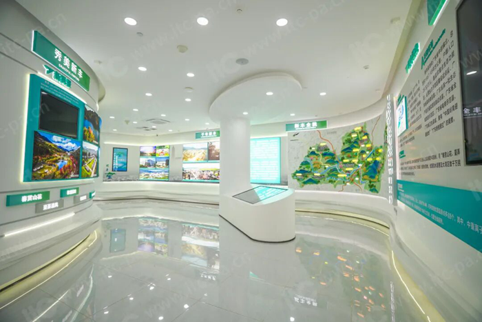 除此之外,韶關新豐新時代客廳內,千年新豐、新豐全貌、全覽新豐、規劃新豐、活力新豐等多個展區板塊,均巧妙運用定制亞克力燈箱、特色燈箱造型及液晶顯示器等打造成裝置區,將動態視頻與靜態圖文有機融合,全方位、直觀地勾勒出新豐縣域發展的宏偉藍圖,也生動映射出韶關片區在時代浪潮中的華麗蝶變。與主展墻的科技展示相得益彰,共同為參觀者帶來了一場沉浸式的縣域綜合形象體驗之旅。