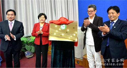 中教啟星總裁周建宇(左一)、內(nèi)蒙古教育廳副廳長楊劼、中廣國際董事長王文斌、內(nèi)師大校長云國宏為內(nèi)蒙古自治區(qū)教師教育協(xié)同創(chuàng)新聯(lián)盟揭牌