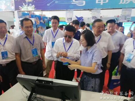 科技節開幕當天,鄂爾多斯市教育局領導一行來到杭錦旗展位,對中教啟星展出VR教學系統表現出濃厚的興趣。教育局領導戴上3D追蹤眼鏡,一邊聆聽講解,一邊用定位筆動手操作。在體驗了相關VR學習資源之后,教育局領導一致認為,中教啟星的VR教學系統直觀、生動,特別適用于教學,希望能夠在中小學大力推廣。