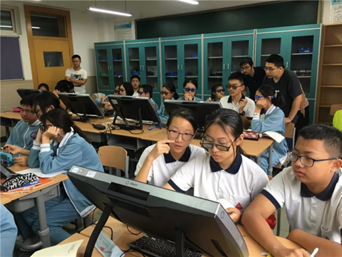 9月19號,一堂別開生面的虛擬現(xiàn)實地理課在首都師范大學附屬云崗中學精彩開講。借助中教啟星全新研發(fā)的地理VR教學系統(tǒng),張曉旋老師帶領初一的同學們暢游虛擬世界,指導同學們辨別方向、規(guī)劃從火車站到“啟星中學”的路線,讓初次接觸地理學科的同學們在自主探索中體會到了地理學習的樂趣。