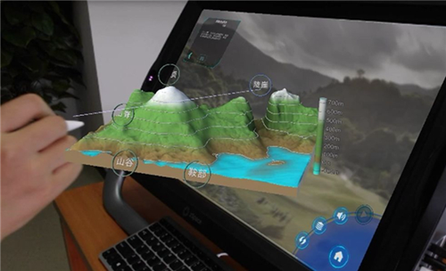 據(jù)悉,“寰宇地理VR教學(xué)系統(tǒng)”依托桌面級(jí)便攜式一體化虛擬現(xiàn)實(shí)設(shè)備,深度集成VR、AR、MR等多種新興技術(shù),將地球和地圖、陸地和海洋、天氣與氣候、國(guó)家和地區(qū)等中學(xué)地理課程的教學(xué)難點(diǎn)直觀、全景、高清地呈現(xiàn)出來(lái),讓學(xué)生在游戲和探索中吸收轉(zhuǎn)化學(xué)科知識(shí)。