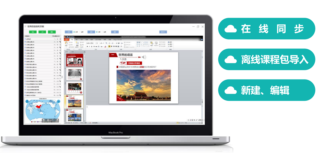 此外,我們從來不做華而不實的“樣子貨”。作為一個簡潔的備課云平臺,系統支持在線同步、離線課程包導入、新建、編輯等功能。也就是說,你只要在自己電腦中裝上我們的系統,您可以在任何時間、任何地點進行備課,方便老師們備課和交流,真正實現常態化使用的班班通設備。