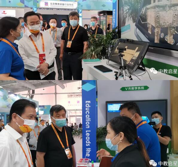 服貿(mào)會(huì)剛開幕,中教啟星展臺(tái)便迎來了重要嘉賓,中共北京市委常委、北京市委教工委書記夏林茂,北京市教委副主任黃侃等領(lǐng)導(dǎo)親臨展臺(tái)指導(dǎo)工作,了解我司自主研發(fā)的VR教學(xué)系統(tǒng)等智慧教育裝備產(chǎn)品。
