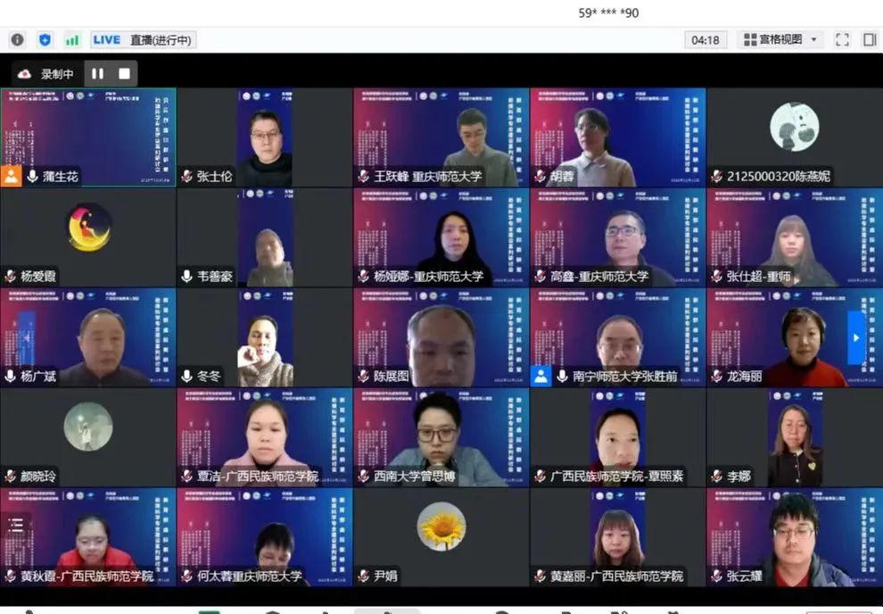 來自上述各個單位的專家教授、地理教育專業研究生、本科生相聚云端,圍繞地理教育教學改革研究從不同方面展開分享。當天研討會分為兩部分,分別是張勝前老師主持的“地理科學專業建設和課程建設經驗交流”和盧炳雄老師主持的“信息技術與地理教學”。