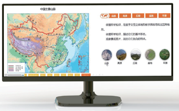 中教啟星地理教學備課系統分軟件和硬件兩大部分,其中,硬件包含21:9超寬屏顯示器、迷你數字星球系統,軟件包括交互地圖教學系統、數字星球系統及配套課程資源、專題資源及拓展資源,實現了球面資源、課程資源與平面交互地圖的完全交互與融合。