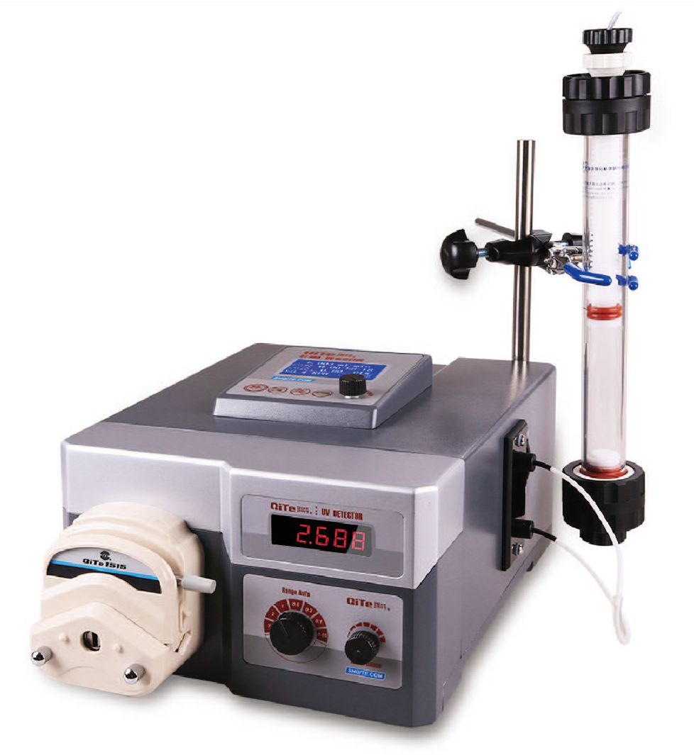 與眾不同: ●該儀器為國內獨創,由紫外檢測儀、智能恒流泵、層析柱組合為一體的紫外檢測分離純化層析儀 ●其中,紫外檢測儀采用進口R212光電倍增管,LED數字顯示4個OD值表,用戶可以直接讀出光密度A值 ●恒流泵步進電機采用256細分驅動,轉動平穩、轉速精確、無振動、無噪音 ●智能紫外檢測儀質量可靠,性能穩定、靈敏,峰值重復性好,是您分離層析實驗的最佳選擇