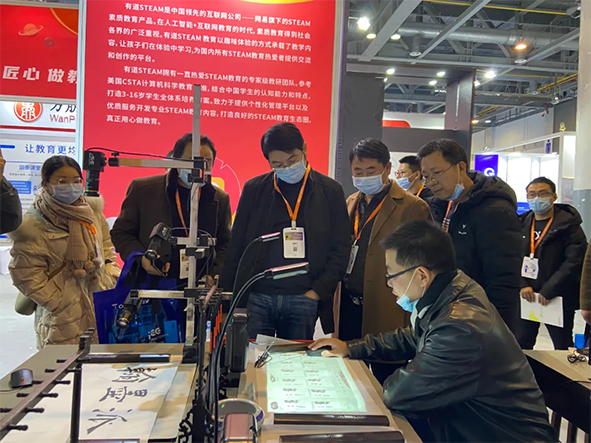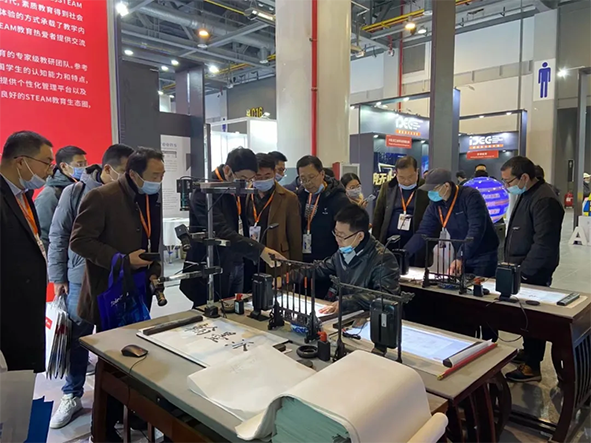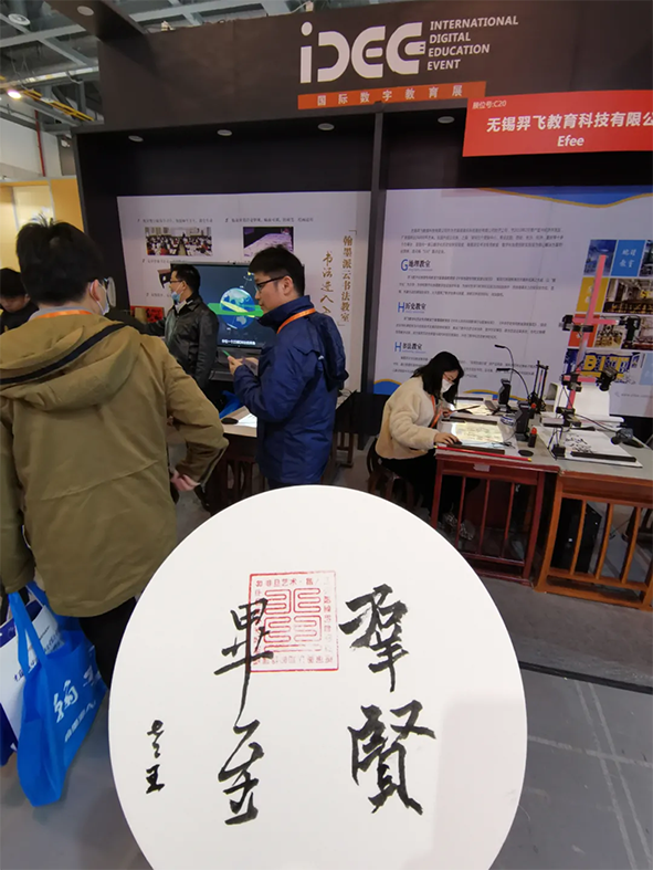 短短兩日,羿飛接待了眾多慕名前來的訪客,所展出的系列翰墨派云書法教學設備及整體解決方案受到了許多教育工作者的認可,大家紛紛駐足觀看并親自揮毫體驗。