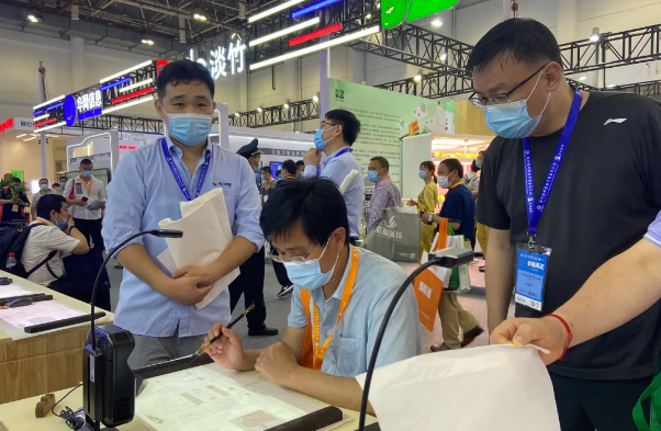 在展會現場,參觀者可領取一份空白扇面,繼而在翰墨派云書法教學系統的指導下完成獨一無二的書法作品。活動參與者眾多,其中不乏眾多書法高手,讓羿飛展區更添光彩。