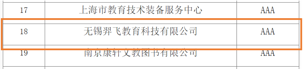 近日,2021年教育裝備行業企業信用等級評價結果出爐,羿飛教育獲得AAA信用等級。