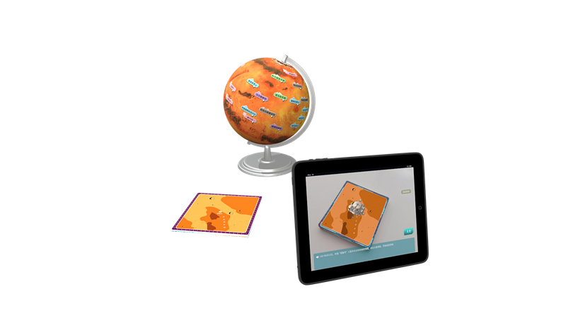 羿飛基于AR技術,開發了AR月球儀、AR火星儀等全新地理科普類產品。實體星球、任務卡與AR技術相結合,以圖片視頻、模型動畫等手法,通過互動性操作,為學生創設一種體驗式和沉浸式的科普環境,提升科普星球知識的趣味性,從而更順利解決知識上的難點和困惑點。