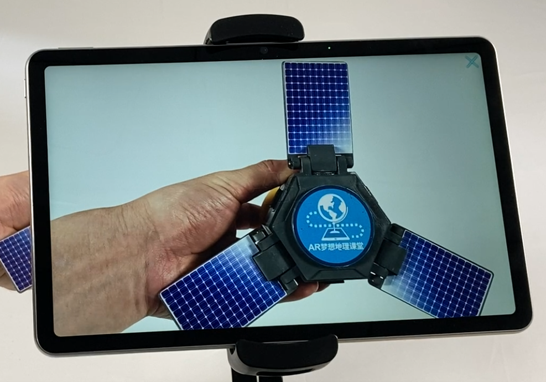 整套設備當中包含多功能遙感衛星模型,該模型不僅可作為學習板的旋轉平臺,還可以掃描模型上的圖文加載內容。具有3D地形畫面,文字介紹和視頻講解的功能。