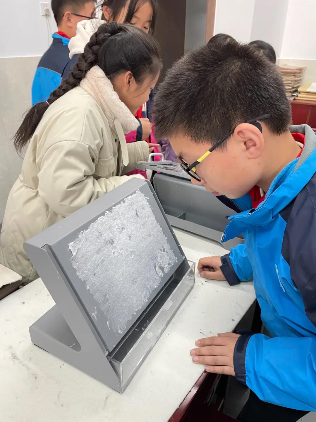 新莊小學開展了傳統文化特色課程,胡老師帶領書法課堂的學生,了解造紙術和印刷術的發展歷程,并一起探索了紙的制作過程。學生們利用“簾床紙膜古法造紙術”實驗套裝,做出了屬于自己的紙張,隨后又開啟了歡樂的拓字實踐。