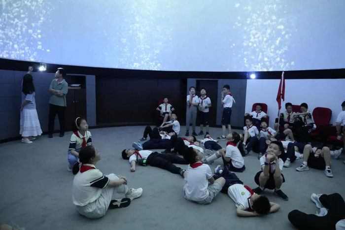 首先,學生們來到了羿飛教育打造的球幕影院。步入其中,仿佛置身于浩瀚宇宙,360 度的沉浸式畫面環繞四周,從神秘的星系運轉到壯麗的地球風光,學生們仰望著穹頂,不禁發出陣陣驚嘆。在這里,他們感受到了科技帶來的身臨其境之感,每一個畫面都像是觸手可及,對世界的認知也在這奇妙的體驗中不斷拓展。