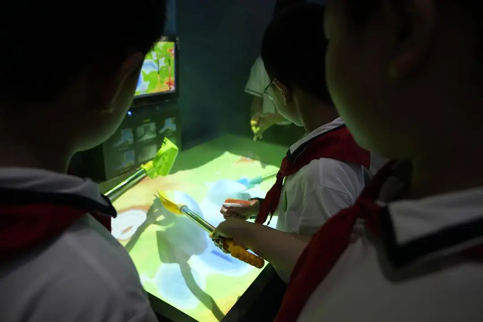 在數字化歷史教室,隊員們穿越時空,領略歷史的風云變幻。數字歷史沿革系統以時間軸為脈絡,展示了各個朝代的興衰更替;歷史九州春秋等展示項目,讓學生們仿若置身于歷史長河中,與古人對話,感受歷史的厚重與魅力。