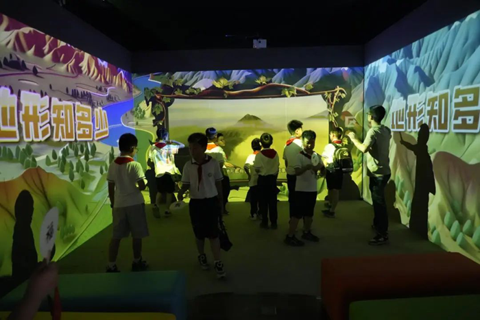 隨后,數字化地理教室成為了隊員們探索世界的新窗口。巨大的多媒體球幕投影演示儀上,山川河流、國家城市清晰可見。通過 AR 地理沙盤,隊員們感受不同的地理環境,親手感受地形的起伏變化,原本抽象的地理知識變得生動鮮活,讓他們對地球家園有了更直觀深刻的認識。