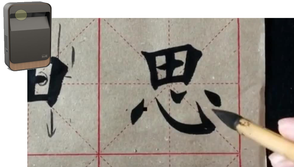 首創微投書寫屏幕技術,通過先進的光電投影,回歸書法的最初書寫形態,讓學生實際書寫時不用改變任何傳統書寫習慣和傳統文房用品,在毛筆、墨水、宣紙之間盡情揮灑,體會書寫的樂趣。相較于其他將宣紙蓋在液晶屏上進行臨摹的模式,翰墨派微投系統不用在桌面挖空放置液晶屏,微投字體更為清楚明了,能給學生帶來更好的書寫體驗,并且能同時實現毛筆、鋼筆、粉筆書寫實訓的需求,提高教室的綜合利用率;提供良好的硬筆書法教學的數字臨摹體驗,真正使用傳統的書寫方式進行數字化教學,大大提升了硬筆書法教學的效果。與此同時,不僅能避免學生書寫臨摹時弄臟桌面,也有效避免了墨水及洗筆水潑灑到電子屏幕上帶來的安全隱患。