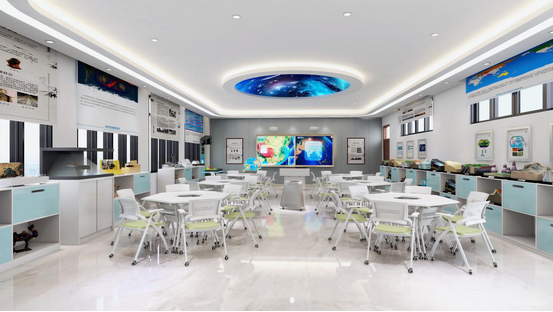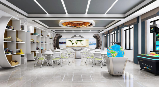 合理利用空間,為日常教學、公開課、評課、集體備課提供必要條件。營造整體地理學科環境氛圍,整體設計以教學為本,配合空間設計手法,實現數字地理專用教室學科特色,藝術特色!