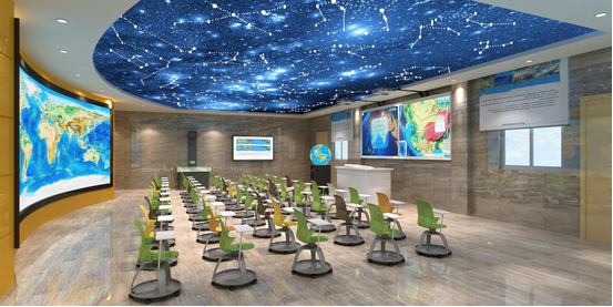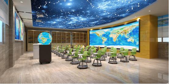 教室通過多媒體球幕投影演示儀系統、數字立體地形,為地理教學、科普活動、環境教育提供先進的數字化教學環境。