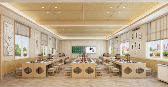 羿飛數字化歷史專用教室匠心獨運,布局上主次分明,井然 有序,裝修上古樸典雅,氣勢恢宏。置身其中,仿佛穿越了歷史 長河。那燦爛輝煌的中華文明、光彩奪目的民族文化,歷久彌新 的文化氣息撲面而來,為學生們營造了一種穿梭歷史時空的學習 氛圍,從而更好地理解歷史的深邃與厚重。