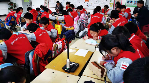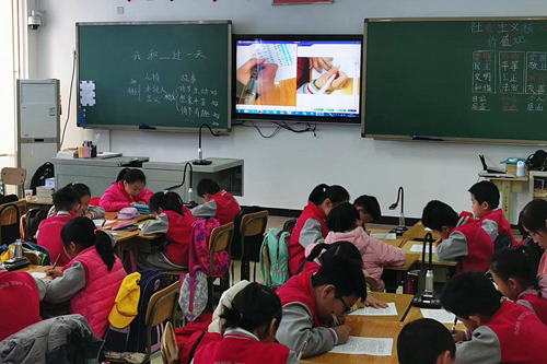 通過(guò)吉星無(wú)線互動(dòng)終端,老師任意調(diào)取學(xué)生寫作過(guò)程到大屏幕,劉老師進(jìn)行個(gè)性化教學(xué)給一人輔導(dǎo)達(dá)到全班講解的效果。