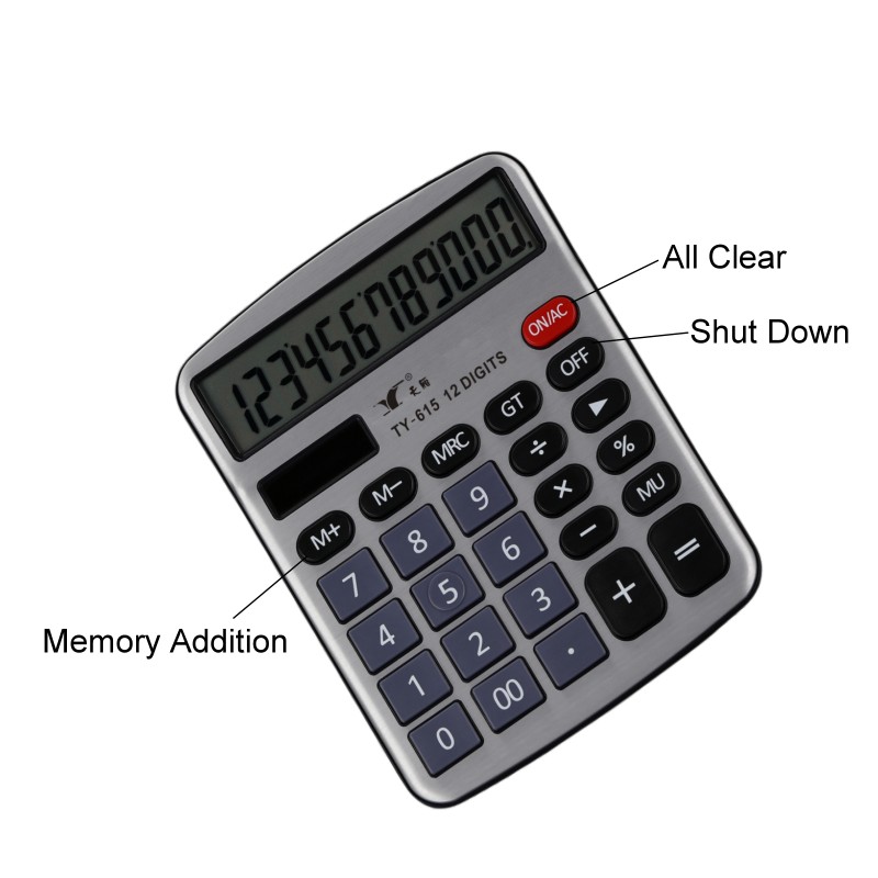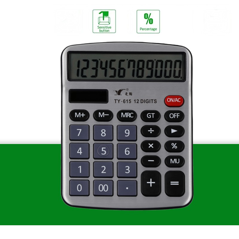 TY-615雙電源12位數金屬面板臺式計算器