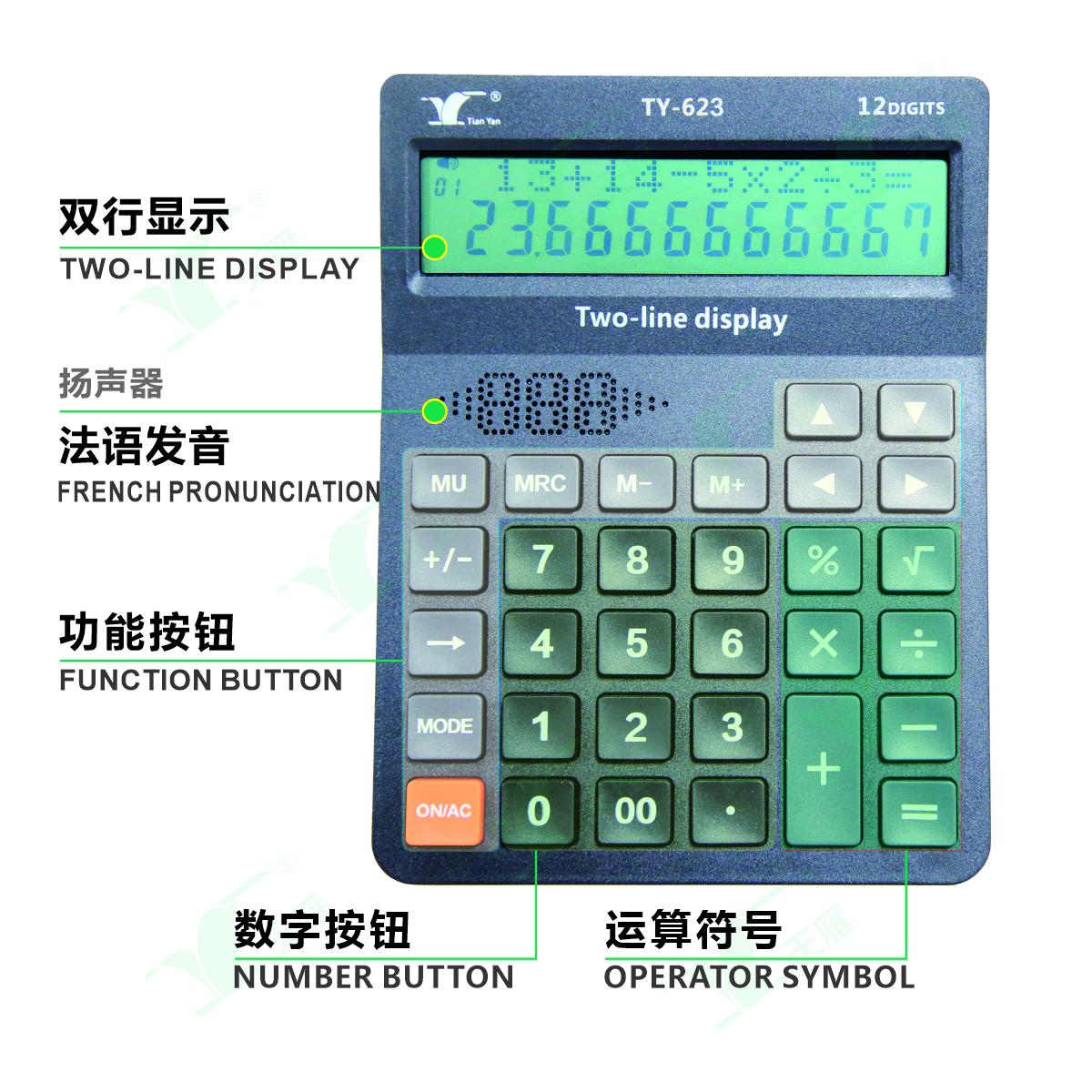 深圳市天雁電子有限公司是一家集設計、開發、生產、銷售和服務于一體的教育電子產品專業生產企業。公司主要產品有:“天雁“牌系列中小學數學教材配套用計算器;“天雁“牌學生計算器科學函數計算器圖形計算器辦公臺式計算器手寫板計算器