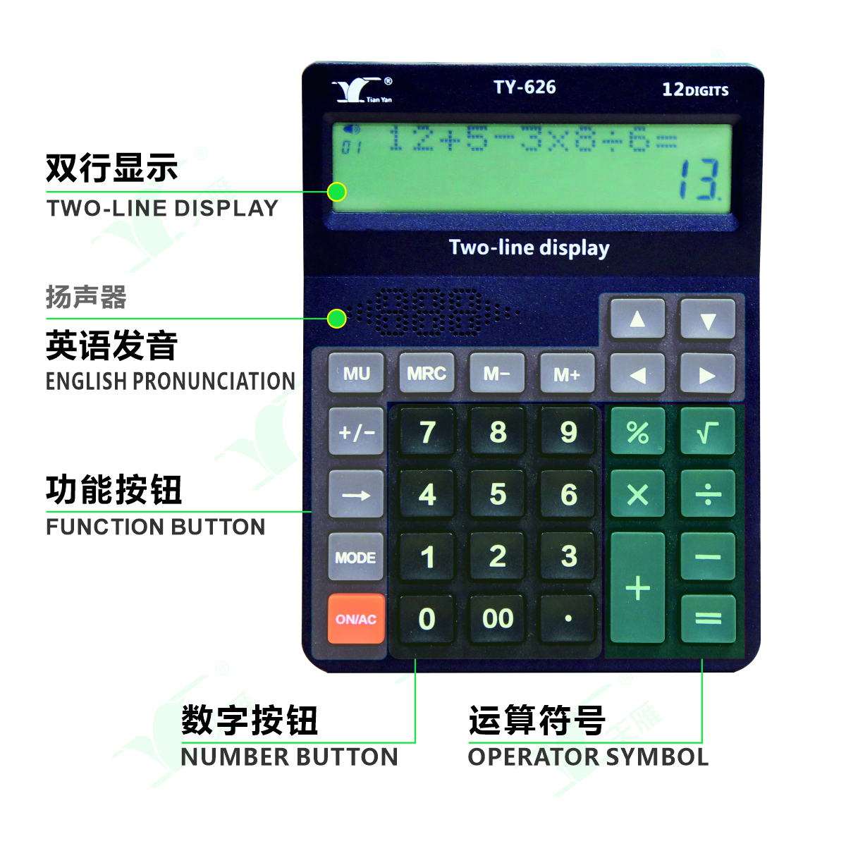 深圳市天雁電子有限公司是一家集設計、開發、生產、銷售和服務于一體的教育電子產品專業生產企業。公司主要產品有:“天雁“牌系列中小學數學教材配套用計算器;“天雁“牌學生計算器科學函數計算器圖形計算器辦公臺式計算器手寫板計算器