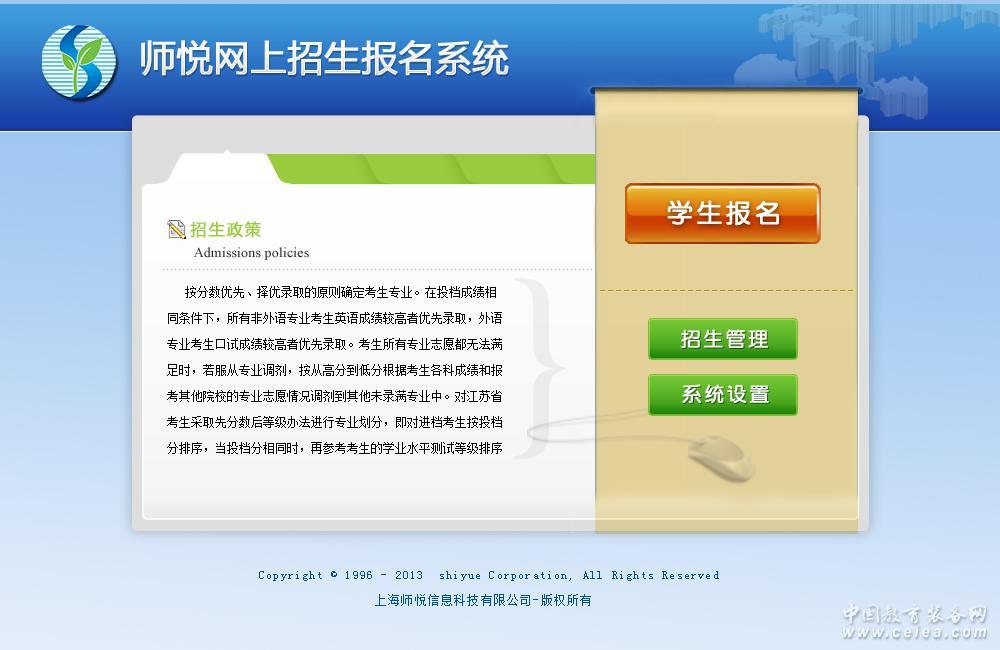 該產品為學生網上填寫、修改報名信息提供支持;為教育職能部門、招生單位、學校等提供報名管理功能。數據準確、安全,每一步都有文字、圖形的說明,方便學生正確操作。實現學生登錄、驗證身份及用戶數據的采集等。