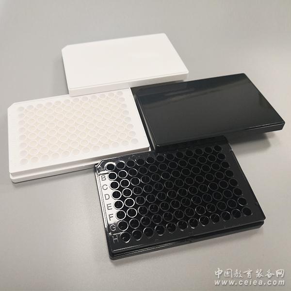 產品詳細介紹WHB 96孔全黑全白發光板 產品參數: 名稱 TC處理標準(全白、全黑)96孔細胞培養板 貨號 WHB-96-01/02 材質 PS(聚苯乙烯) 生長面積 0.31cm2 容積 0.34ml 品牌 WHB 尺寸 158*85*17mm 規格 1個/包,80個/盒,320個/箱 產品特點: 1.防滑設計:產品邊緣設計有防滑設計,防止拿握培養板時脫落。 2.鮮明標記區域:藍色標記區域提供了鑒別說明的空間。多孔培養板面字體為黑色,可清 楚分辨孔的位置,燈光暗的情況下也可區分,減少視覺的疲勞。 3.最大通氣量、最小損水率:板蓋有一個通風系統,保證了對氣體交換的控制,迷宮型 蓋、凝結環和深孔設計可控制污染,減少蒸發和最大限度的減少邊緣效應。 4.斜角設計防污染:斜角的設計防止蓋子與培養板的倒置,減少誤差。培養板的標記區域 對著板蓋的標記區域,保證位置一致。 5.TC處理工藝、平整基底:細胞培養表面通過TC處理增強細胞吸附。細胞生長區域只位 于圓形基底部,而不在側壁,這減少了光線的散射對觀察的干擾。 6.白色96孔板設計為化學發光設計,白色板可增強熒光信號,并在生物自發光與熒光發光中有低背景 7.黑色96孔板設計為了降低熒光檢測中的背景及減少交叉干擾,黑色版有低背景熒光,光散射低 8.高透明復合材料包裝袋提供培養板一個無菌的環境