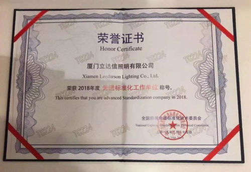 大會對2018年度工作表現突出的單位進行了表彰。立達信積極參與各項標準制修訂工作,在標準工作中表現突出,榮獲"2018年度先進標準化工作單位"稱號。