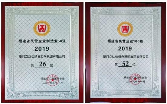 立達信獲2019福建民營企業百強 2019福建省民營企業制造業50強