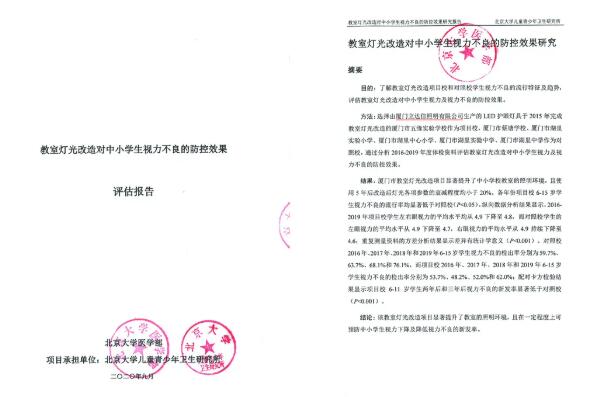 最經典的應該是我們第一所整校改造案例廈門五緣實驗學校。改造五年來,經權威機構檢測,各項指標依然優(yōu)于國家標準。更可喜的是,由教室照明國標主起草單位北京大學兒童青少年衛(wèi)生研究所(國標GB7793-2010《中小學校教室采光和照明衛(wèi)生標準》、國標GB40070-2021《兒童青少年學習用品近視防控衛(wèi)生要求》主起草單位)出具的報告顯示,立達信健康光環(huán)境的改造在一定程度上可預防中小學生視力下降及降低視力不良的新發(fā)率。統(tǒng)計數(shù)據(jù)顯示,不同年齡段近視率下降了5.9-33.3%不等。