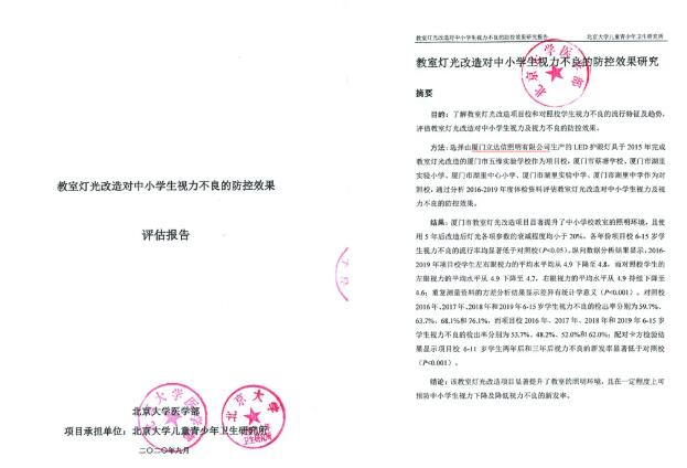 北京大學(xué)醫(yī)學(xué)部、北京大學(xué)兒童青少年衛(wèi)生研究所(國標(biāo)GB7793-2010《中小學(xué)校教室采光和照明衛(wèi)生標(biāo)準(zhǔn)》、國標(biāo)GB40070-2021《兒童青少年學(xué)習(xí)用品近視防控衛(wèi)生要求》主起草單位)出具的權(quán)威報告顯示:立達信健康光環(huán)境改造項目顯著提升了教室的照明環(huán)境,在一定程度上可預(yù)防中小學(xué)生視力下降和降低不良視力的新發(fā)率。根據(jù)與對照校不同學(xué)齡學(xué)生的近視不良率對比,改造校學(xué)生的近視率下降5.9-33.3%不等。