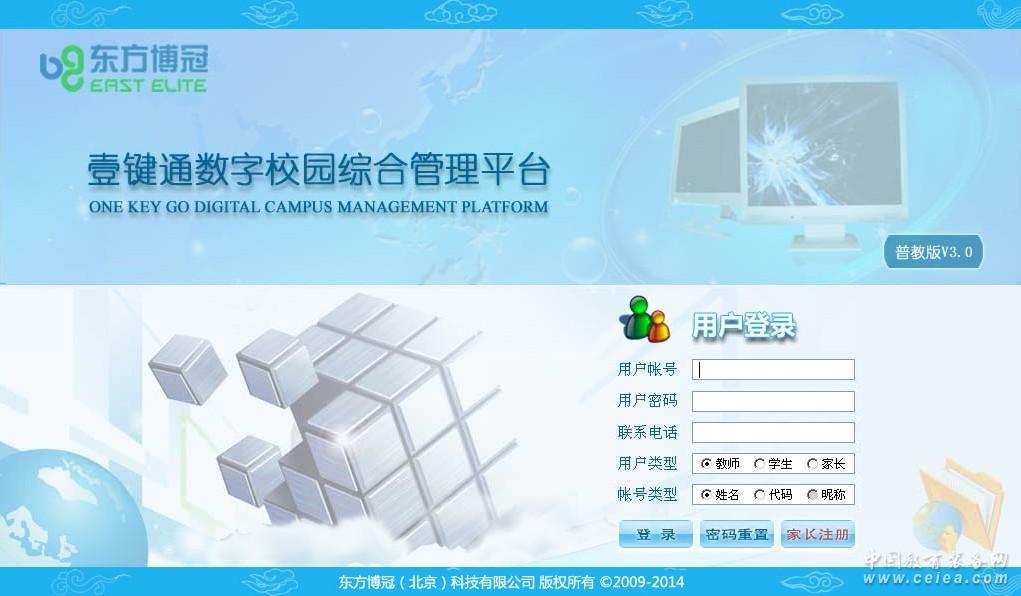 產品詳細介紹一、公司概況 東方博冠(北京)科技有限公司是一家穩步成長型的高科技公司,公司管理層由IT及教育界資深人士構成,公司以“融東方智慧,博行業桂冠”為發展目標,以“客戶滿意,實現客戶夢想”為經營宗旨,專注于數字校園領域的軟件研發、應用及推廣,并依靠點點滴滴、鍥而不舍的艱苦追求,使我們成為數字校園領域的探索者與領航者。 公司依托北京航空航天大學計算機學院的技術優勢,總部位于北京,在西安、烏魯木齊等多個城市設有辦事處,公司目前擁有員工80多人,80%以上是碩士研究生學歷,并聘請北京航空航天大學、西安交通大學的多位專家作為公司技術顧問。 公司秉承“軟件即服務”的服務宗旨,不斷創新,把客戶的需求放在首位,把對客戶的應用保障放在首位,您的滿意將是我們持續發展的源動力。 二、產品介紹 2.1壹鍵通數字校園綜合管理平臺 壹鍵通數字校園綜合管理平臺以規范教育信息,簡化日常管理方法,提高管理和信息使用效率,減輕管理教職工的工作強度,降低管理成本為設計目標,通過教育信息化引領教育現代化,推進信息技術在教學和管理中的應用,不斷建設和完善數字化校園,壯大教育信息化骨干力量,整體提高全校師資隊伍教育信息化水平,全面實施現代化優質教育。本平臺其中涵蓋了管理信息化、教學信息化、辦公自動化、保障信息化、資源共建共享五個方面: 2.1.1管理信息化 管理信息化程度代表著教育管理的現代化水平,通過人事、學籍、預約、文件、在線調查、在線評價等信息化應用,實現學校各項管理工作的信息化,從而加速教育現代化的進程。 2.1.2教學信息化 教學信息化涵蓋新課改、學生素質評價、教學質量分析、試卷分析四個方面,其中信息技術為新課改與學生素質評價的順利進行提供了有力支持與保障,而通過對考試成績的從年級、班級、教師、學生、試卷等不同角度的統計分析,實現教學科學管理,對于提升教學質量、整體管理水平和工作效率有非常重要的意義。 2.1.3辦公自動化 辦公自動化是采用Internet/Intranet技術,以通知、消息、日程、待辦事宜、便簽本、通訊錄等工具為基礎,使學校教職工方便快捷地共享信息,高效地協同工作;改變過去復雜、低效的手工辦公方式,實現迅速、全方位的信息采集、信息處理,為學校的管理和決策提供科學的依據。 2.1.4保障信息化 保障信息化為學校發展保駕護航,通過實現對設備、易耗品(辦公用品、清潔用品、維修用品)、車輛、計量收費、在線報修、職工宿舍、學生公寓、圖書、工資等方面的網絡化、信息化管理,為管理人員提供了簡便、快捷的網絡化管理服務,更好的服務學校教育教學。 2.2壹鍵通網上閱卷管理系統 網上閱卷是以電子掃描技術和網絡技術為依托,實現客觀題自動閱卷,主觀題網上評卷的一種現代閱卷方式,既提高了閱卷質量,也提升了閱卷的工作效率。采用網上閱卷進行考試閱卷與統計分析,不但免去了評卷教師對紙質答卷的整理、翻閱、成績計算、成績登記以及成績統計分析等人工操作,也免除了人工流水線閱卷產生的中間等待和誤差。 網上閱卷首先要求設計并印制試卷,考試結束后,再通過高速掃描儀對考生答卷進行掃描,生成圖像文件,存儲在計算機里。對生成的圖像文件通過軟件程序自動進行切割,客觀題由計算機自動閱卷,主觀題由計算機將各題組數據隨機生成發送給閱卷教師的計算機終端,由閱卷教師通過計算機終端進行閱卷。客觀題和主觀題閱卷完畢,由計算機自動匯總生成考生的考試成績和分析數據。 壹鍵通網上閱卷管理系統是東方博冠在多年教育信息化產品開發的經驗基礎上,結合目前閱卷管理工作中存在的問題,將高速掃描技術、圖像切割技術、圖像識別技術和網絡技術引進閱卷過程,以《教育測量學》、《教育統計學》和《教育評價學》為理論依據開發的計算機網上閱卷系統。系統具有高效、公正、準確等優勢,且操作簡便、快捷、統計分析功能強大,可以適用于各種類型考試網上閱卷工作。 公司網站:www.eastelite.com.cn 服務郵箱:[email protected] |