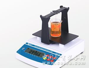 ① 將盛有樣品的測量杯放于測量放置板上,扣除掛鉤的重量。
