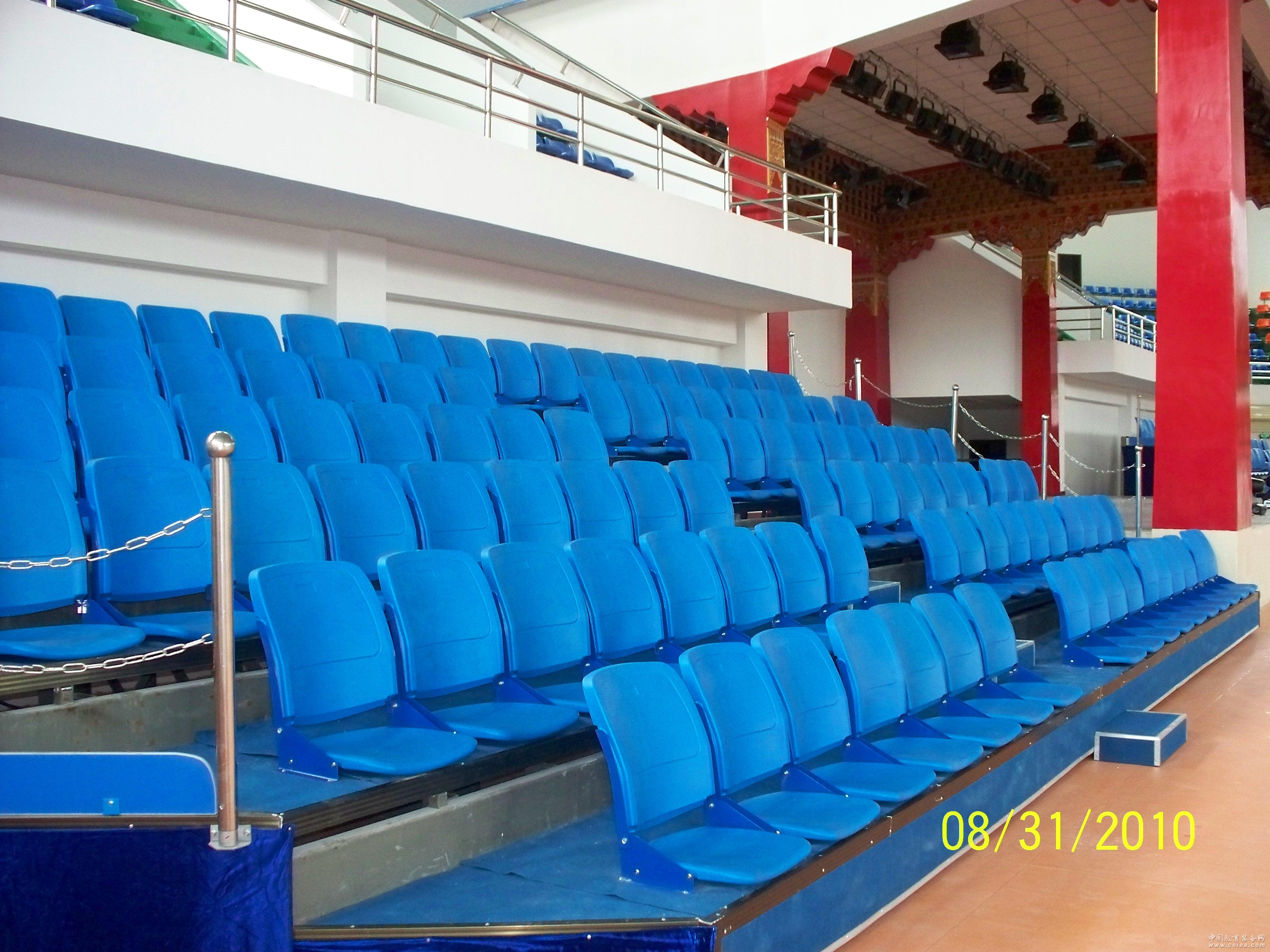 產品詳細介紹JY-8701活動看臺座椅 ◆產品技術指標 序號 項 目 技 術 參 數 1 底輪承載能力 ≥350Kg/只 2 鋼骨架展開抗靜載荷 ≥400kg/㎡,橫向擺動≥36kg/㎡ 3 階臺面展開可承靜載荷 ≥400kg/㎡ 4 看臺床面深度 850mm 5 看臺每層高度 350/280mm 最底層高度320mm 6 看臺通道寬度 800mm-1000mm ◆活動看臺座椅材料規格及要求 1、底盤方鋼 大梁(折邊形成):180×60×30×2.5㎜ 主撐柱:100×50×2.5㎜ 主撐梁:50×40×2.0㎜ 40×40×2.0㎜ 斜撐角鋼:40×4㎜ 2、臺階:1830×910×16㎜高壓板 3、包邊:鋁合金型材65×35×1㎜ 4、活動部件:100*30㎜牛筋輪。 5、活動看臺座椅式樣:前置式,采用中空吹塑座椅;座椅尺寸為高55cm, 深55cm, 中心距為50cm,座椅安裝穩定、簡單。 6、安裝配件:采用鋼板沖壓件,表面噴漆處理
