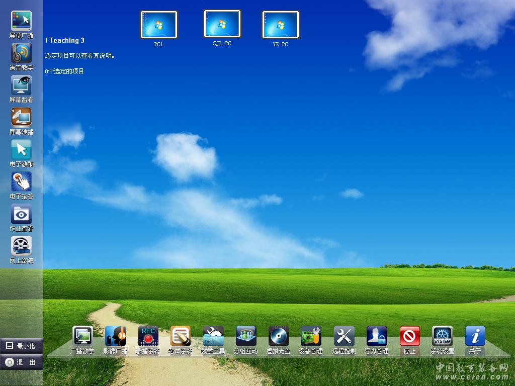 產品詳細介紹i Teaching是一套機房教學及管理維護與一體的多媒體網絡教學平臺系統。該系統包括廣播教學、錄播、影像廣播、網絡考試、教學工具、分組互動、虛擬光盤、設備管理、遠程控制、行為管理等十大子系統。全面為學生營造良好的上機環境,更出色、更高效的完成機房管理和教學工作。