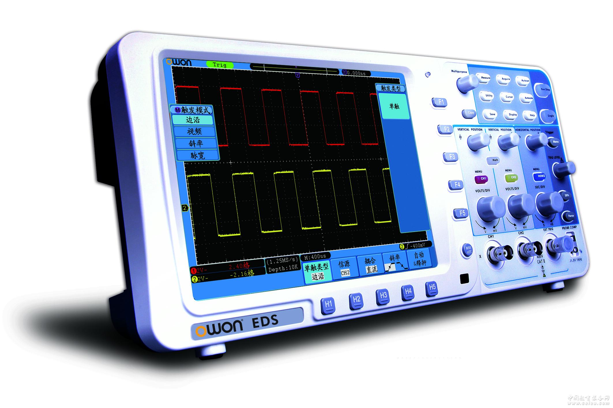 產品詳細介紹 +性能參數 型號 EDS102C 帶 寬 100MHz 實時采樣率 1GS/s 上升時間 (BNC上典型的) ≤3.5ns 時基范圍 2ns/div ~ 100s/div,按1 ~ 2 ~ 5進制方式步進 存儲深度 10M 通 道 2通道 + 外部觸發 顯 示 8英寸TFT (真彩色) 液晶屏幕,65535色,800×600像素 時間間隔(△T) 測量精確度 單次:±(1采樣間隔時間+100ppm×讀數+0.6ns), >16個平均值:±(1采樣間隔時間+100ppm×讀數+0.4ns) 輸入耦合 直流、交流、接地 輸入阻抗 1MΩ±2%,與15pF±5pF并聯 垂直靈敏度 2mV/div~10V/div(在輸入BNC處) 垂直分辨率 8bit分辨率,兩個通道同時采樣 最大輸入電壓 400V (DC+AC峰值、1MΩ輸入阻抗) (10:1探頭衰減) 觸發類型 邊沿觸發、視頻觸發、交替觸發、脈寬觸發、斜率觸發 探頭衰減系數 1X, 10X, 100X, 1000X 通道間的隔離度 50Hz:100:1,10MHz:40:1 波形內插 Sin(x)/ x 位移范圍 ±1V(2mV~50mV), ±10V(100Mv~1V),±100V(2V~10V) 低頻響應 (交流耦合,-3Db) ≥5Hz (在BNC上) 直流增益精確度 ±3% 觸發耦合方式 DC耦合、AC耦合、LF抑制、HF抑制 觸發方式 自動、正常、單次 觸發電平范圍 內部 距屏幕中心±6格 EXT ±600mV EXT/5 ±3V 觸發電平精確度 (典型的) 適用于上升和下降時間≥20ns的信號 內部 ±0.3格 EXT ±(40mV+6%設定值) EXT/5 ±(200mV+6%設定值) 觸發靈敏度 (視頻觸發、典型的) 內部 2格峰間值 EXT 400mV EXT/5 2V 信號制式和行/場頻率 (視頻觸發類型) 支持任何場頻或行頻的NTSC、PAL和SECAM廣播系統 自動測量 峰-峰值、均值、均方根值、頻率、周期、最大值、最小值、頂端值、底端值、幅度、過沖、預沖、 上升時間、下降時間、正脈沖、負脈寬、正占空比、負占空比、延遲A→B 、延遲A→B 數學操作 加、減、乘、除、FFT 存儲波形 15組波形 李沙育圖形 帶寬 滿帶寬 相位差 ±3 degrees 電流測量范圍 100mA/V~1KA/V 光標測量 光標間電壓差(△V),光標間時間差(△T) PC接口 USB、支持U盤存儲、LAN、VGA / RS232 (選配) 電 源 100~240VACRMS,CATⅡ 電 池 7.4V,8000mAh 尺 寸 340mm (長)×155mm (高)×70mm (寬) 重 量 1.8公斤(主機) 以上參數如有變化不再另行通知,請以網站更新為準。 +應 用 電子線路檢測 電路功能測試 設計與制造測試 教育和技術培訓 汽車維修檢測 +主要配件 圖片僅供參考,請以實物為準 電源線 驅動光盤 產品說明書 USB數據線 探筆 校正筆 電池(選配) 包(選配) |