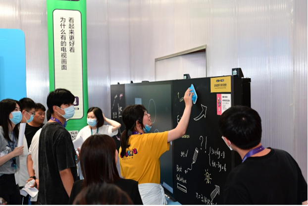 不僅如此,本次展覽還設置很多有趣的展項。比如可樂冰沙機,僅用8秒就可以把可樂變成冰沙;海信智慧黑板,在大屏上用“筆”無限書寫,“黑板”彈鋼琴;海信智學軟件,一秒鐘出一套試卷;海信智慧平板,小朋友們更可體驗老爸老媽的開會日常,成為會議中的“C位擔當”、毫不費力和外國人英語交流、會議紀要掃碼帶走……