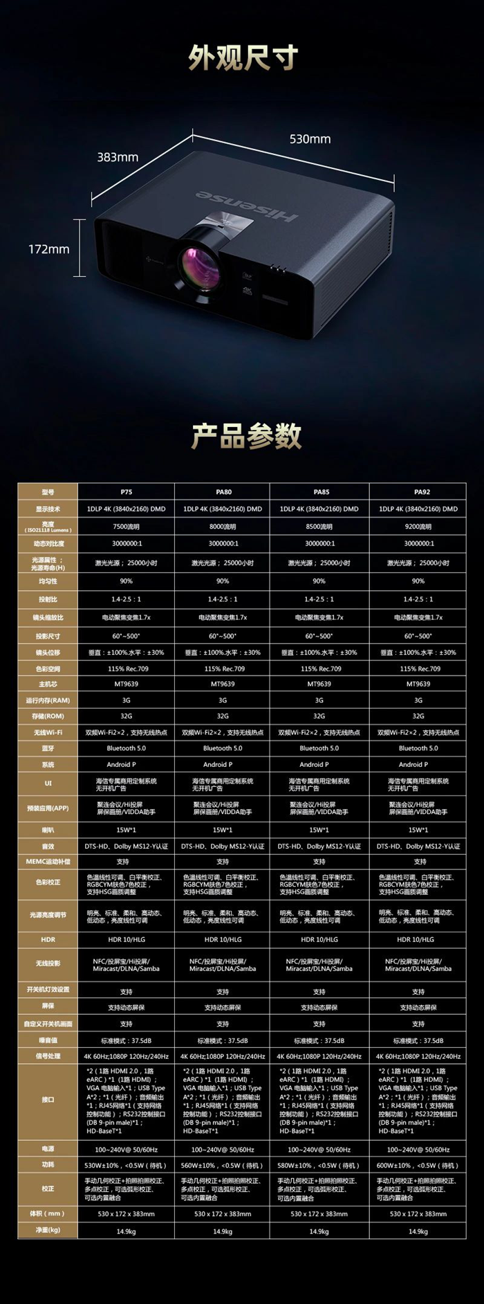 一圖了解|海信全能型4K AI激光工程投影機P75系列