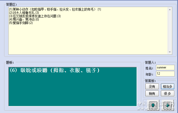 5、從走神(不注意)或疏漏、多動(dòng)(沖動(dòng)抑制困難)或錯(cuò)誤、反應(yīng)時(shí)及反應(yīng)時(shí)標(biāo)準(zhǔn)三個(gè)方面評(píng)估注意力及沖動(dòng)控制過(guò)程。